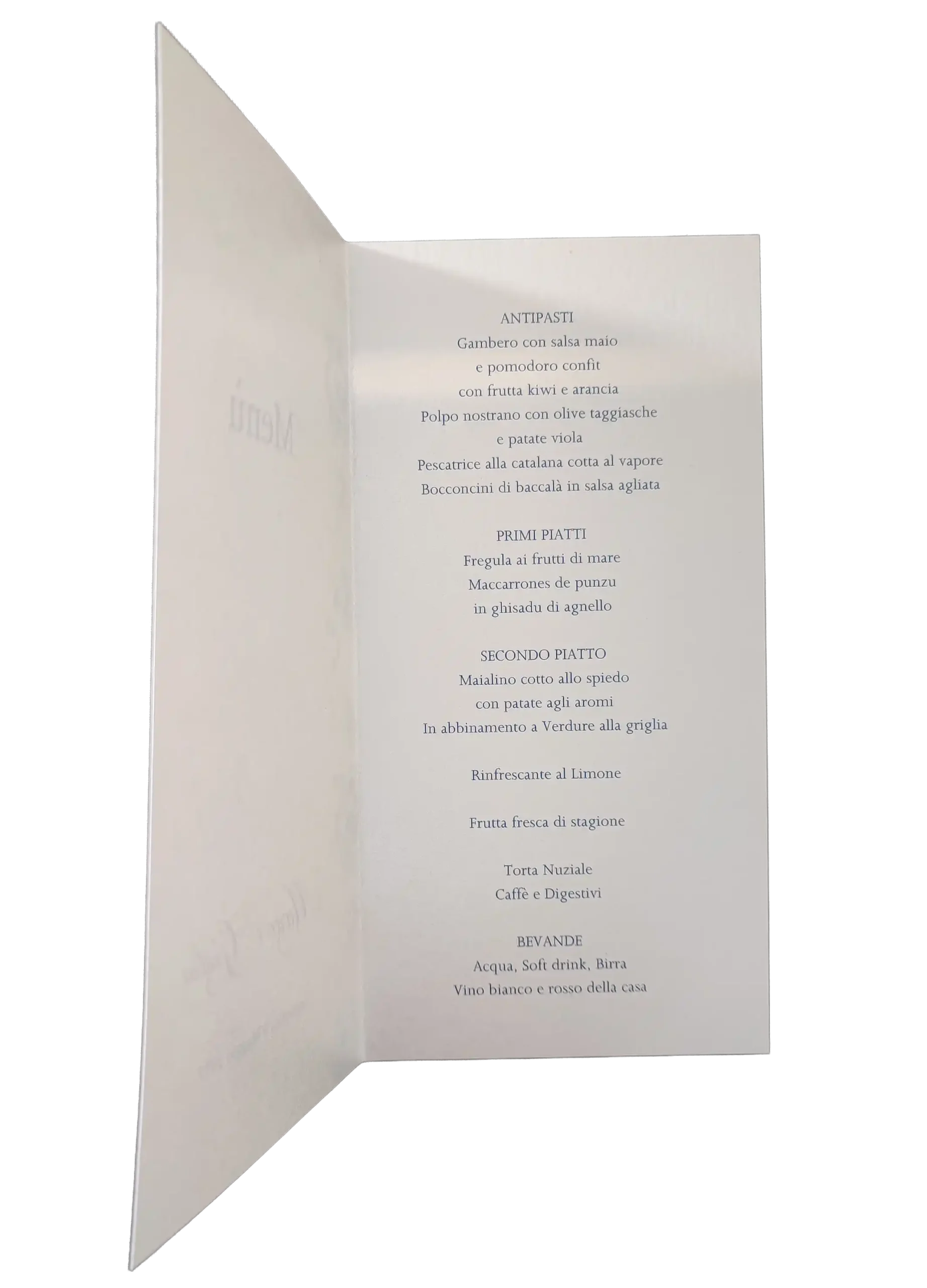 La robustezza del cartoncino garantisce che il menù resti perfettamente in posa sul tavolo, diventando un vero e proprio elemento decorativo della vostra mise en place.