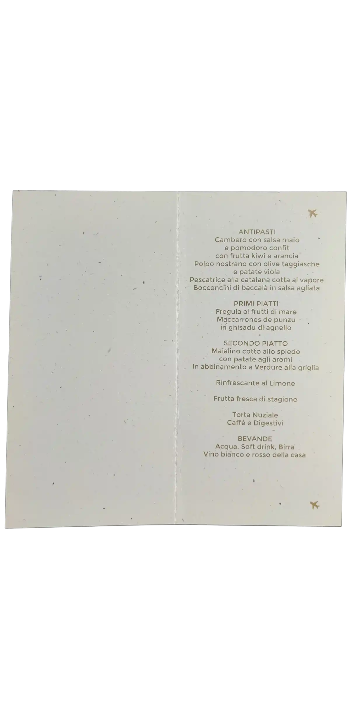 La robustezza del cartoncino garantisce che il menù resti perfettamente in posa sul tavolo, diventando un vero e proprio elemento decorativo della vostra mise en place.