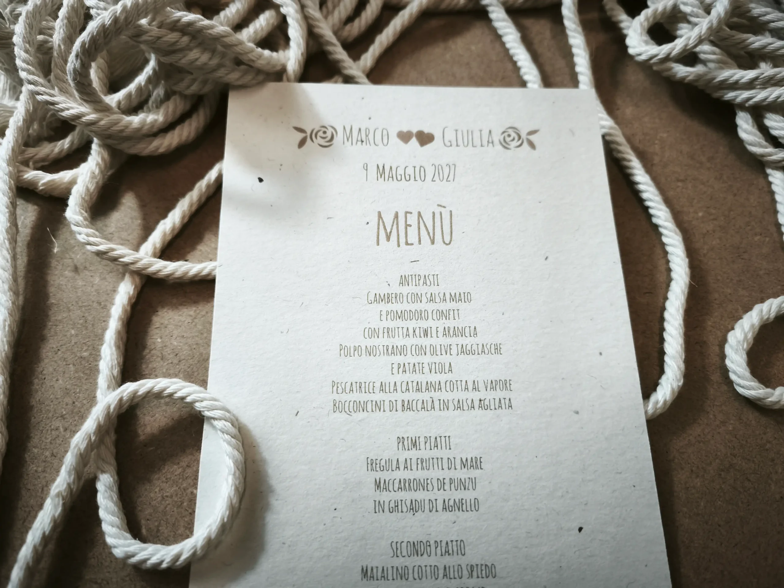 Grazie alla grammatura sostenuta, il menù mantiene una rigidità ideale sia per essere adagiato direttamente sul tovagliolo, sia per essere inserito in eleganti segnaposti o piccoli cavalletti.