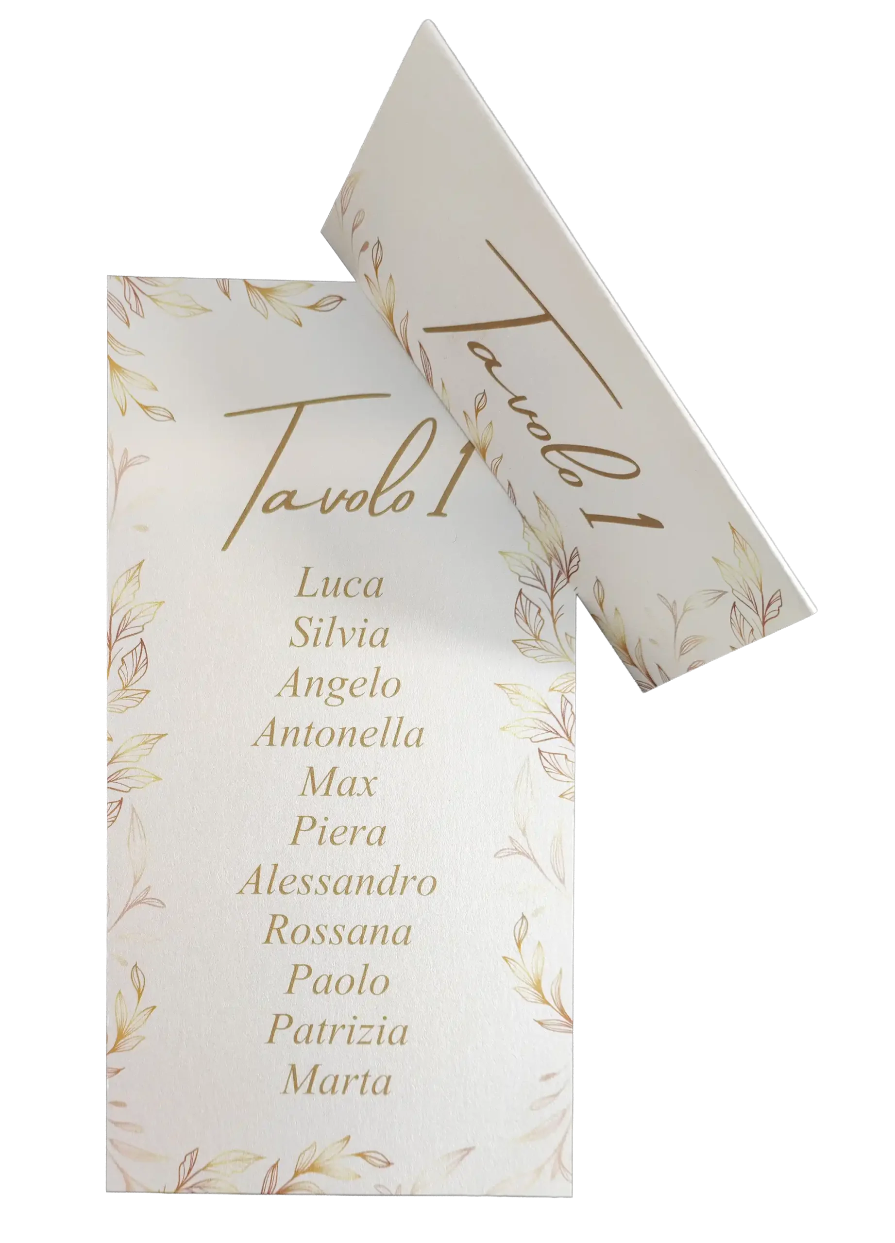 Realizzato in pregiato cartoncino perlato color avorio da 240 gr, riprende un design elegante e dalla palette cromatica dell’intero coordinato, garantendo un’armonia visiva perfetta in ogni angolo del vostro ricevimento.