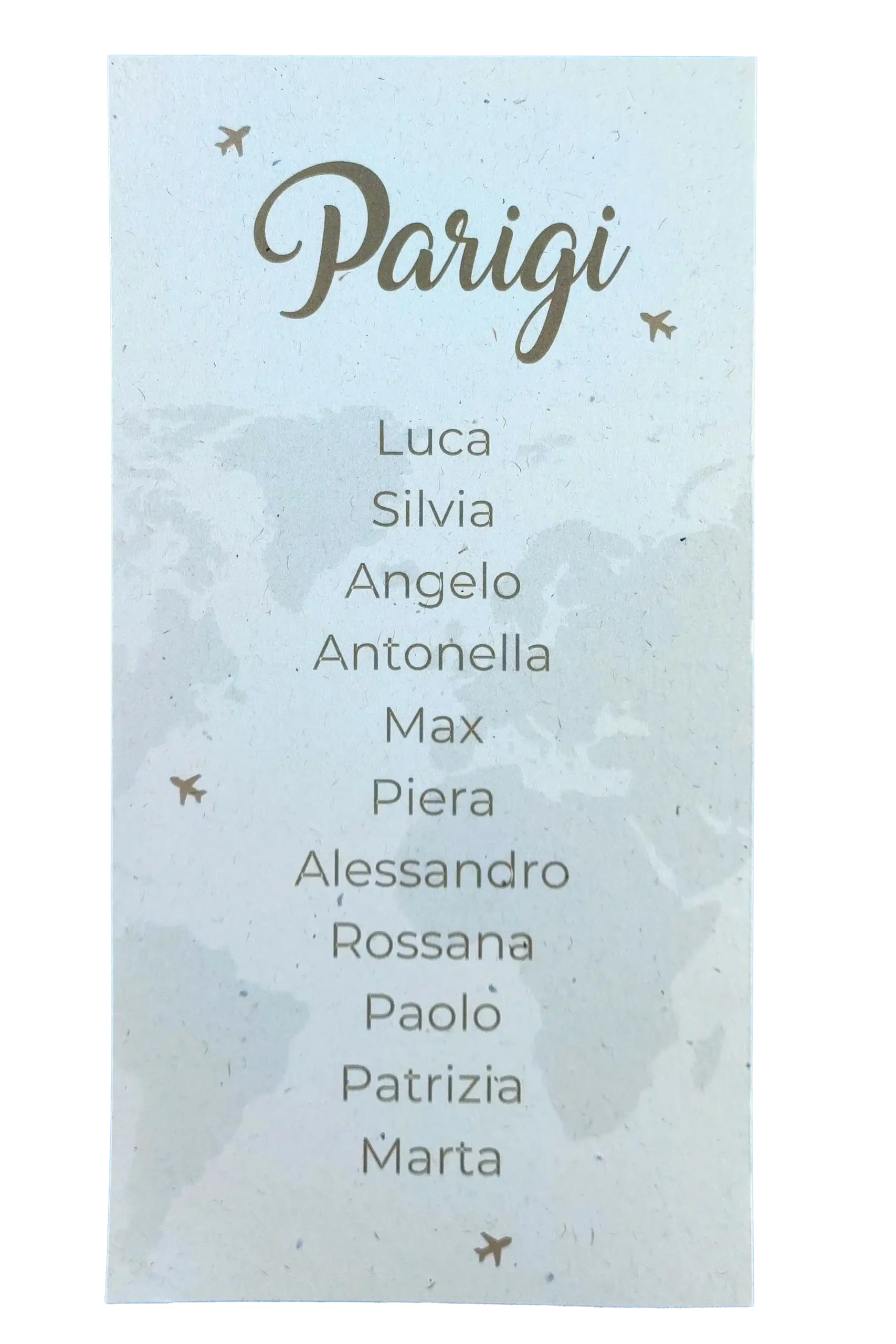 Il cartoncino singolo per tableau della linea “Viaggio” è l’elemento ideale per comporre il vostro Tableau de Mariage in modo creativo e ordinato.